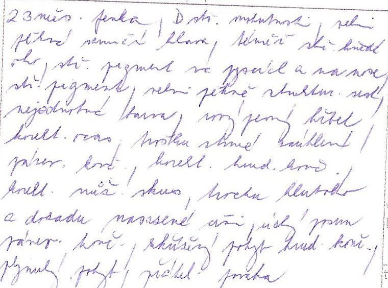 posuzovatel: Anna Bogocka, Pl, posudek: stredný formát, správne stavená, pekný výraz hlavy s dobrou silnou papurlou, trochu viac výrazný stop, dobrá srsť, uvolněný pohyb.